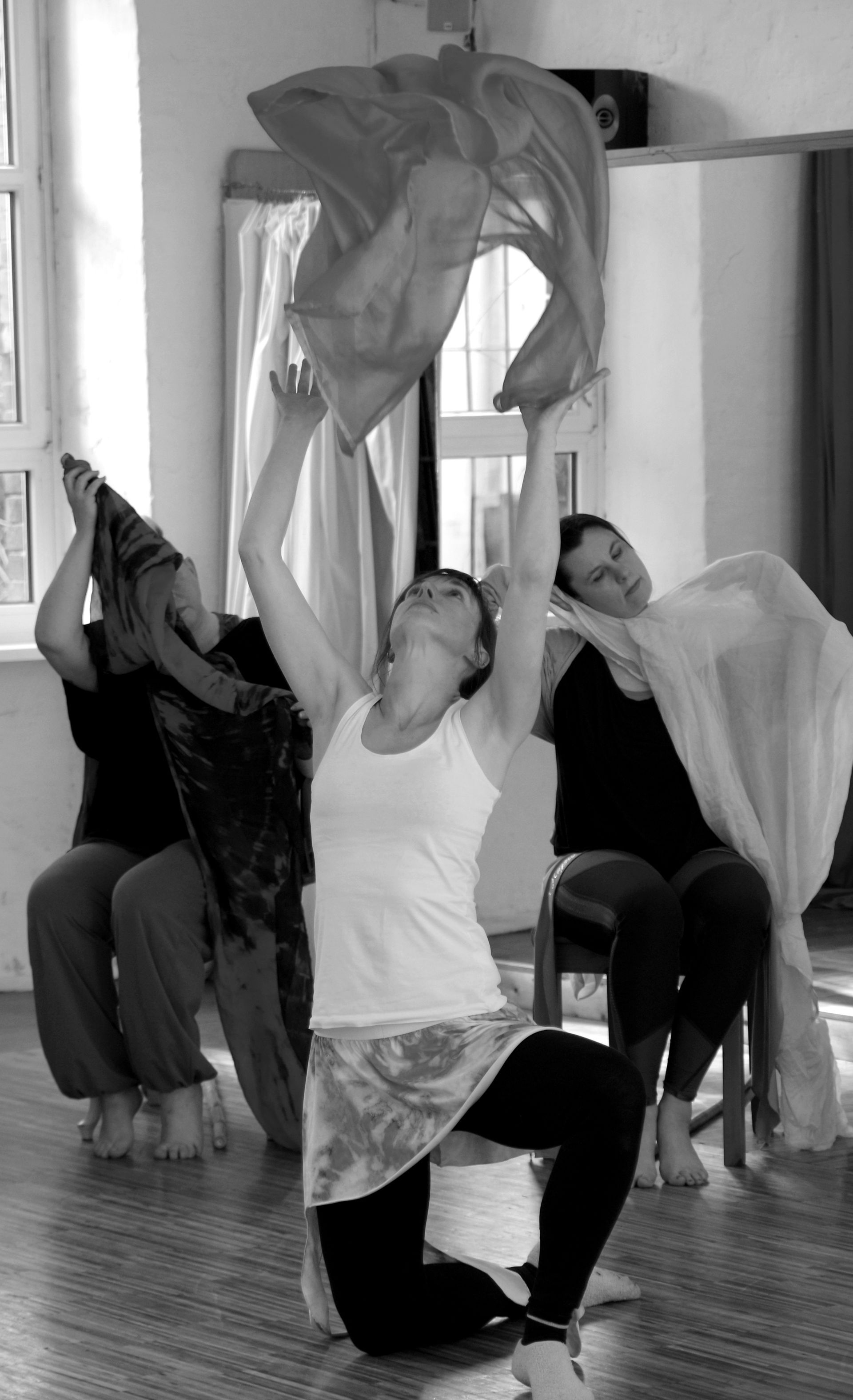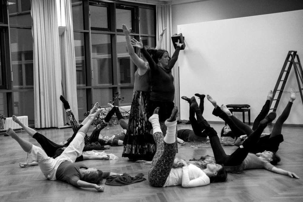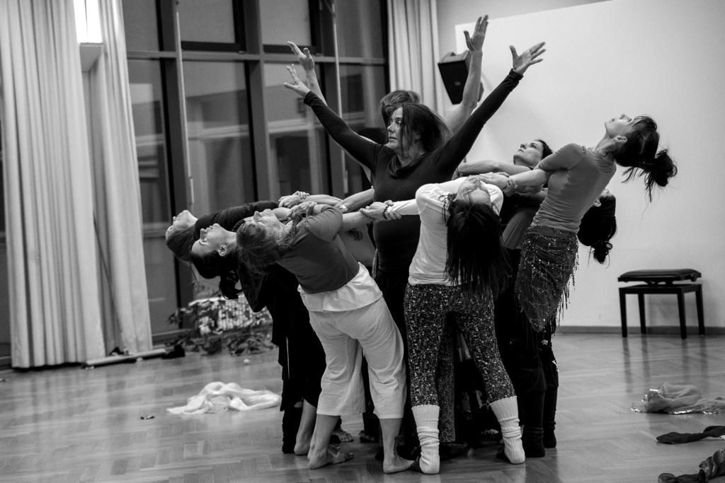 Jede Werkstattklasse ist anders, geht auf ihre eigene Reise. Ausgebildete TänzerInnen und begeisterte Laien finden während der sechs Wochenendproben umfassenden Entwicklungsphase ganz selbstverständlich zu einer funktionierenden Gemeinschaft zusammen, lernen miteinander und voneinander. Die abschließende, ca. 50minütige Werkschau folgt keiner festgelegten Choreographie, einzig dramaturgische Verabredungen tragen durch das improvisierte Spiel. Der Klang eines bestimmten Instruments, eine schnelle Entscheidung, eine Geste: alles wird von den TänzerInnen aufgenommen, spontane Bilder voller Poesie und Aussage entstehen, beschwören die Magie des Augenblicks.